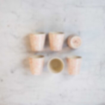 Imagine freshly ground coffee and freshly baked almond biscotti, paired with these splash-painted mugs in lovely colors.