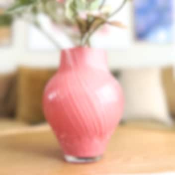 With its swirling shape in clear or pink glass, it feels like a caramel in vase form. Sweet, swirly and completely irresistible. The swirl effect catches the sunlight and brings the whole vase to life. Let it shine on its own as a piece of glass art or as a flower vase.