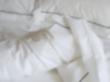 5. Placera kuddar och täcke symmetriskt på sängen.