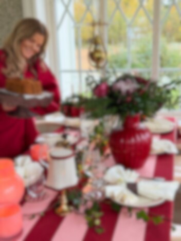 Therese Falk – skaperen bak Instagramkontoet @3res – vet hvordan man lager den stemningen som får alt til å føles litt ekstra fint rundt bordet. Til Holiday-sesongen, med alle kommende middager og adventskos til festlige gløggkvelder og jul, dekker hun opp med farger, lys og herlige materialer som setter tonen for hele rommet. Dype røde nyanser møter rosa i myke tekstiler og glansfulle interiørdetaljer. Resultatet blir en opplevelse fylt av magiske holiday-feelings.