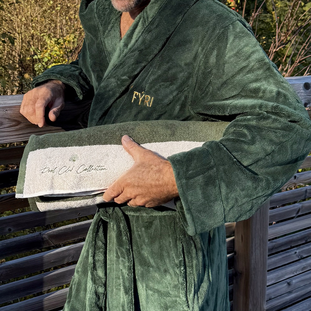 Finally checked in! What’s the first thing you do? Wrap yourself up in that super fluffy green bathrobe waiting on the hotel bed, of course. It’s like Fyri knows exactly what you need to relax and feel at home. It’s soft, it’s luxurious, and it’s your new dress code for (almost) your entire stay. And guess what? You can actually take that same feeling home with you.