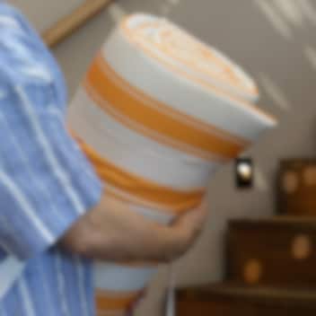 I år er den dessuten laget i 100% polyester, noe som gjør den ekstra slitesterk for strandliv og poolheng. Den kan enkelt rulles sammen for praktisk oppbevaring eller tas under armen til neste stranddag. Perfekt når du vil sette deg ned, lene deg tilbake og nyte solen – uansett hvor du er.
