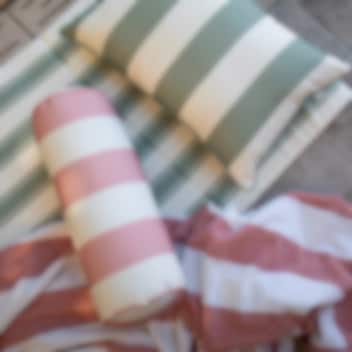 Det stripete designet matcher strandmadrassen og puten i samme kolleksjon og finnes i fargene hvit/gul, rosa/hvit og grønn/hvit. Hvilken blir din favoritt?