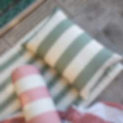 Det stripete designet matcher strandmadrassen og bolsteren i samme kolleksjon og finnes i fargene hvit/gul, rosa/hvit og grønn/hvit. Hvilken er din favoritt?