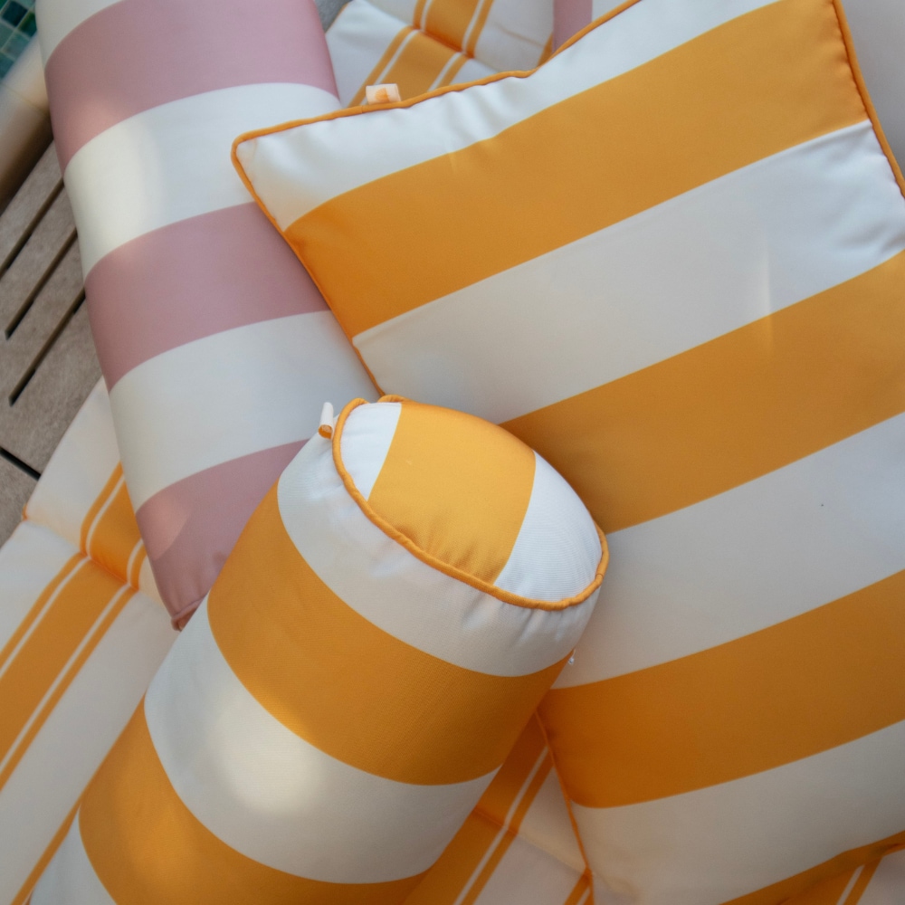 Den er laget i 100% polyester, noe som gjør den ekstra slitesterk for strandliv og poolheng. Perfekt å hvile hodet mot eller bare som en myk detalj når du vil lene deg tilbake og nyte solen – uansett hvor du er.
