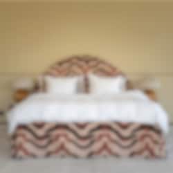 Our new bed headboard, Cole, from Boe is ready to transform your bedroom into a true showstopper. The velvety surface boasts an elegant texture that combines subtlety with a prominent character, giving Cole a sense of luxury and quality. The design exudes a beautiful dynamic with flowing lines and a refined wildness, featuring soft shapes and earthy tones of brown, cream, and rust. It’s wild in a restrained way, with just the right amount of drama—enough to stand out without being overwhelming.