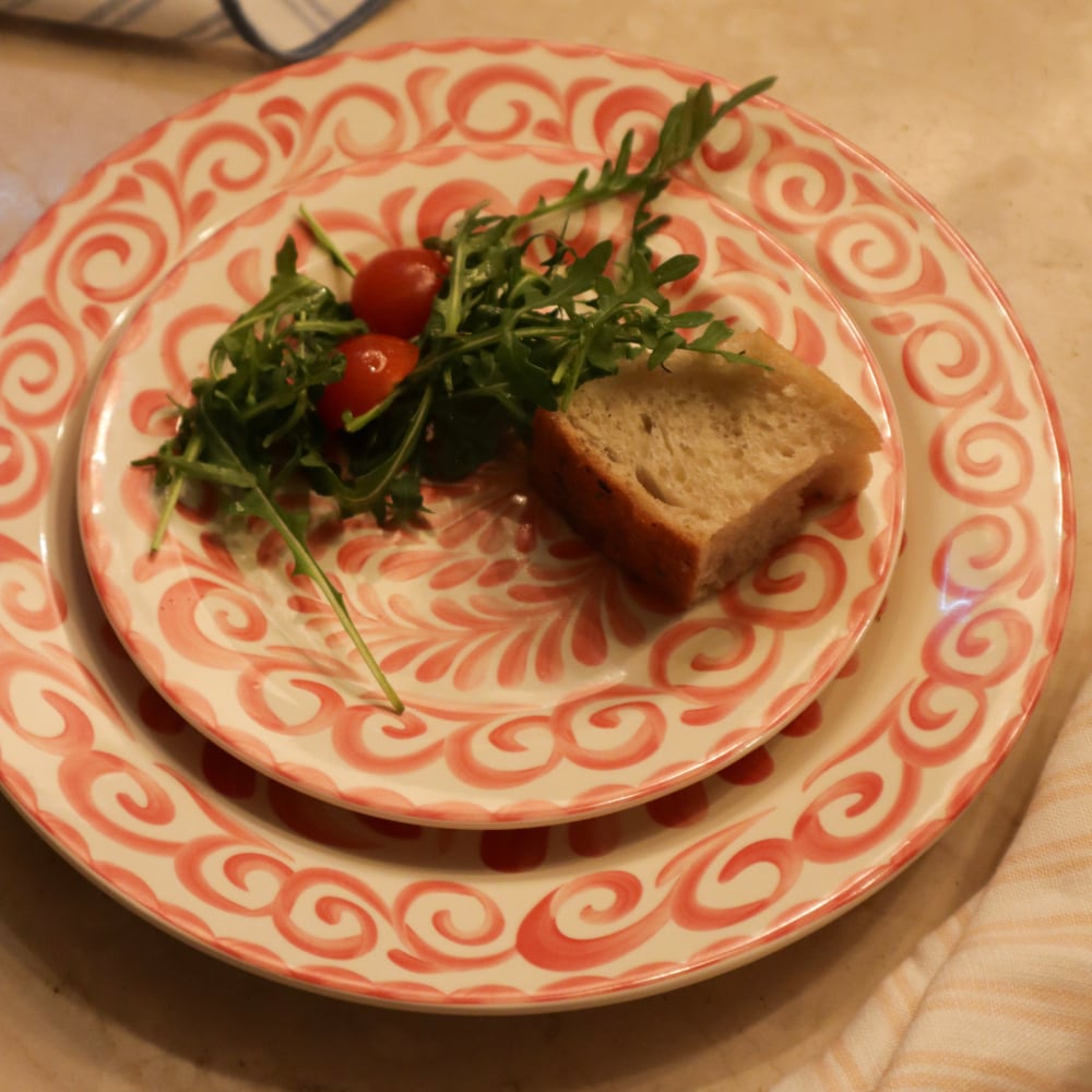 Inspirerad av Italien där vardag och fest flyter ihop, där kaffet dricks långsamt och middagen får ta tid. Med sina rustika former och lekfulla färger är Ciao Bella-tallriken gjord för allt från enkla vardagsrätter till middagar – alltid med en varm och inbjudande känsla.