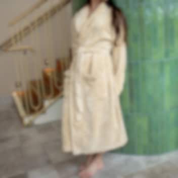 Äntligen incheckad! Vad är det första du gör? Jo, sveper in dig i den där härligt fluffiga badrocken som ligger och väntar på hotellsängen. Det är nästan som att Hjortviken vet exakt vad du behöver för att slappna av och känna dig som hemma. Den är mjuk, den är lyxig, den är din nya dresscode under (nästan) hela din vistelse. Och vet du vad? Du kan faktiskt ta med dig precis samma känsla hem.