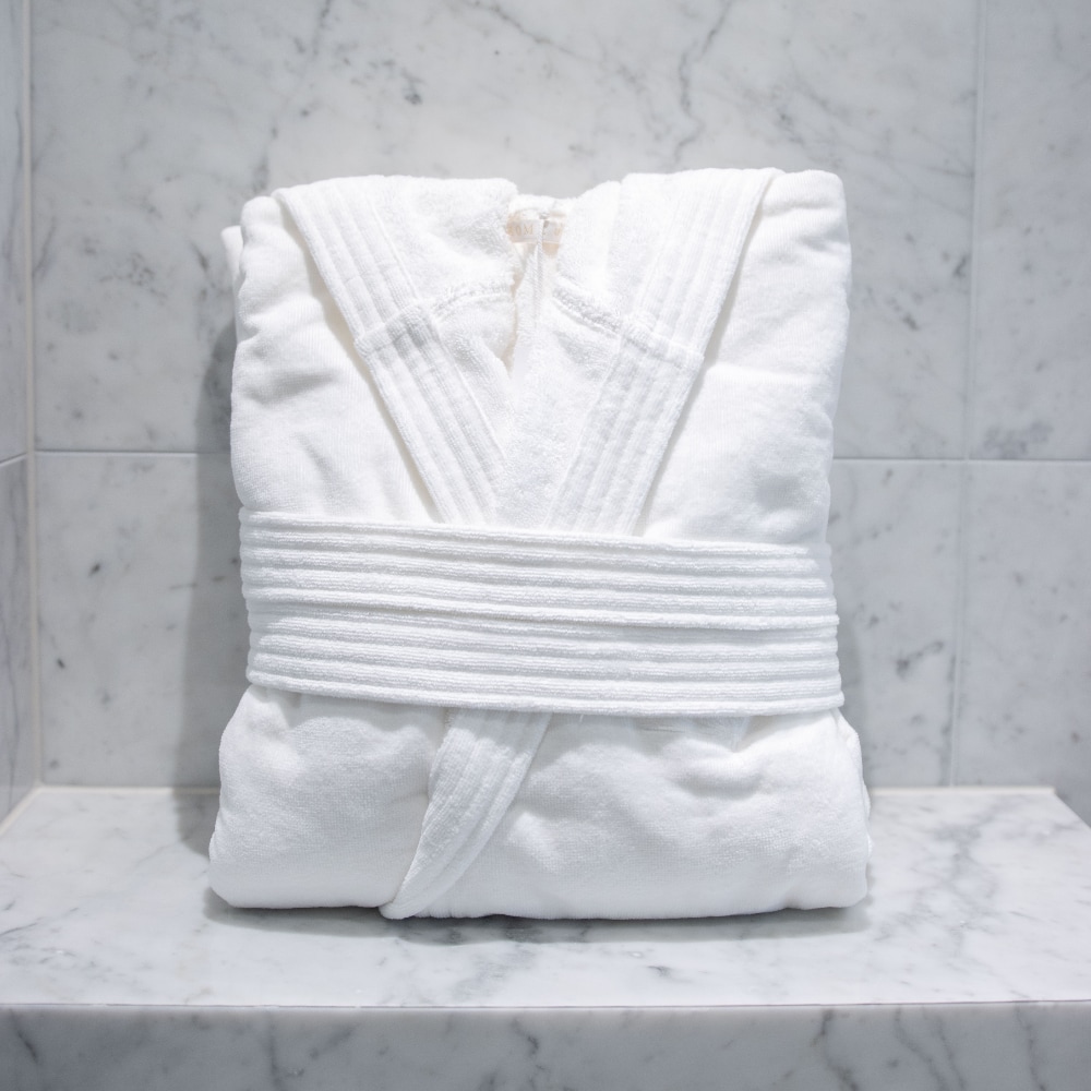• För classy, hotelllyx – välj en rejäl badrock i klassisk frotté.