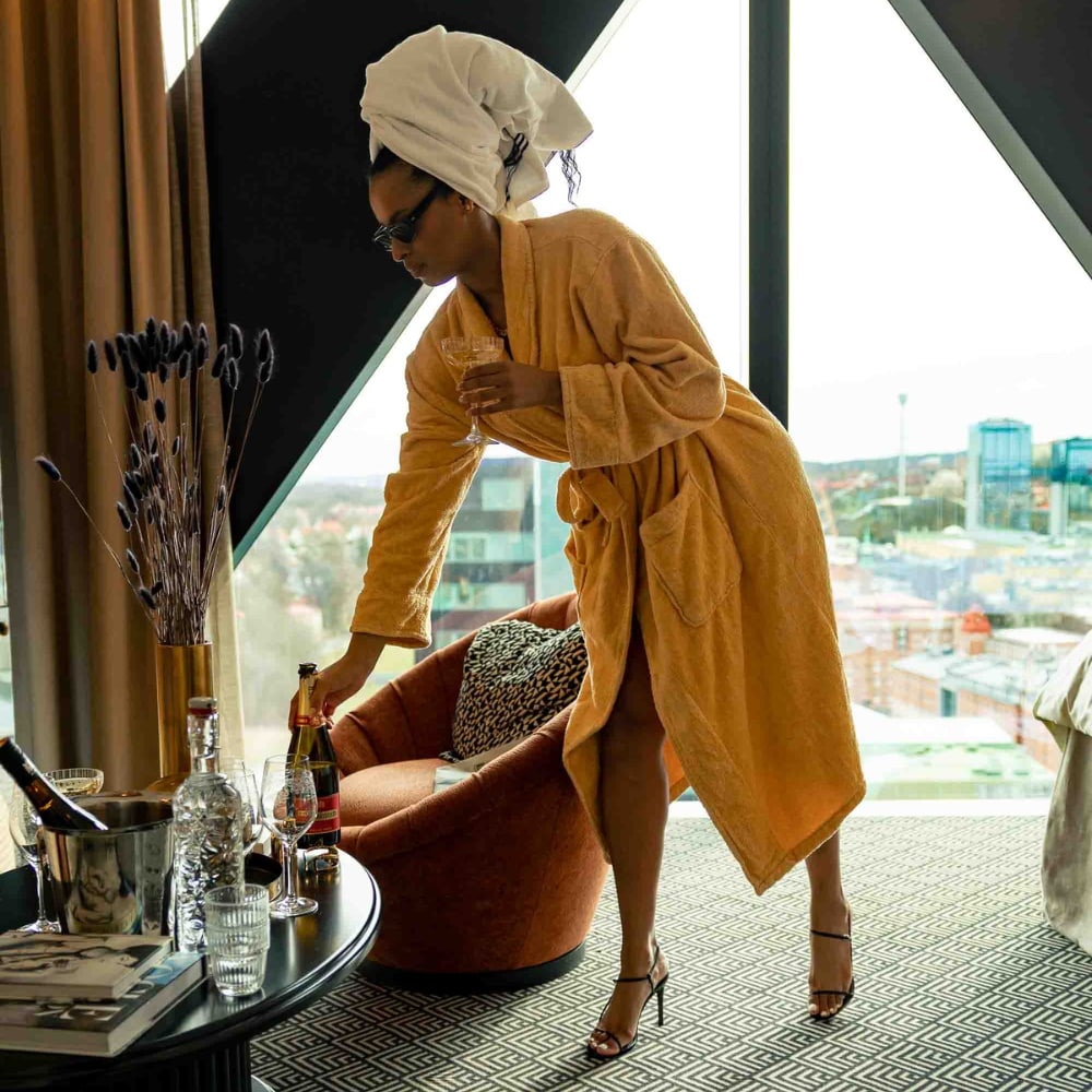 • För classy, hotelllyx – välj en rejäl badrock i klassisk frotté.