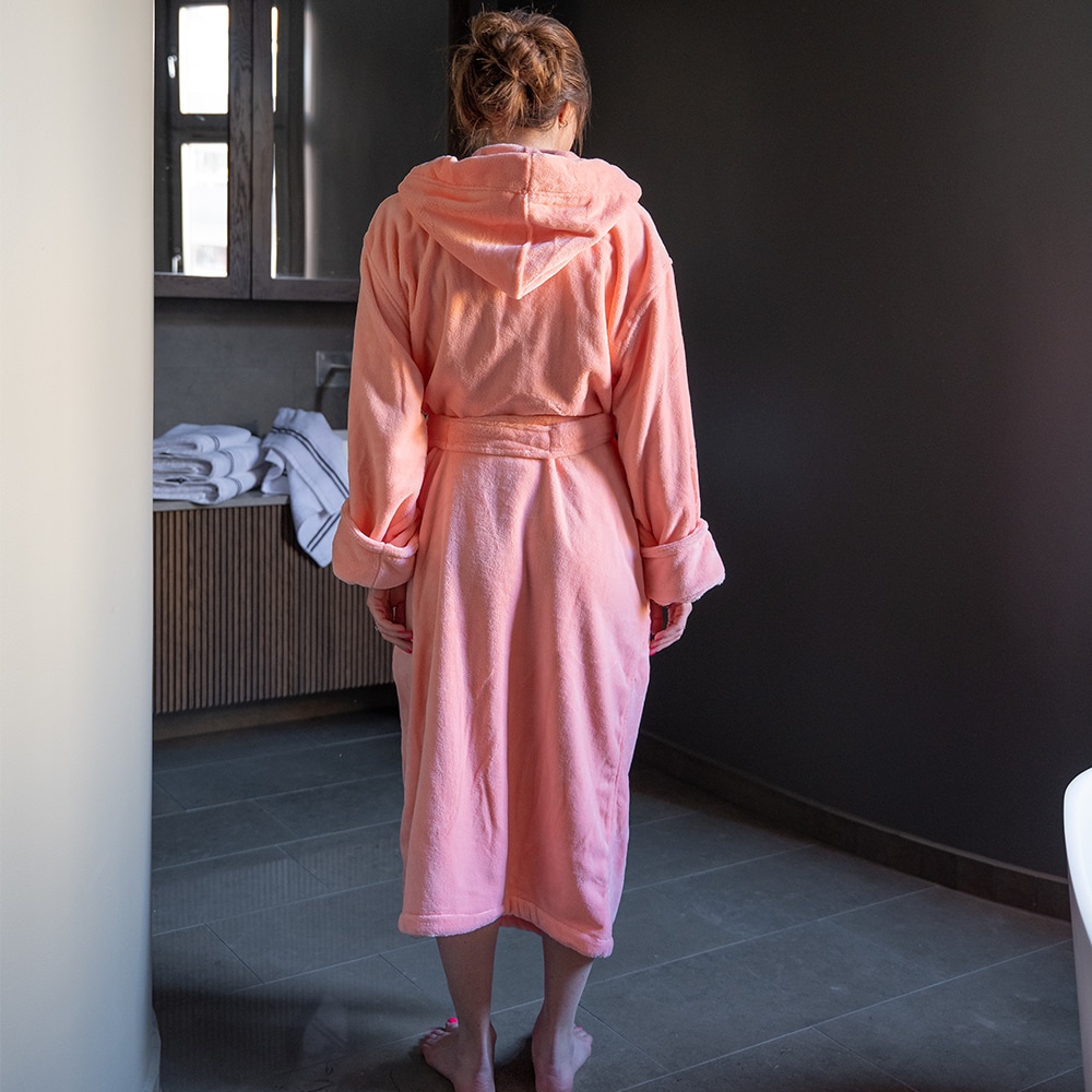 • För varm, omfamnande känsla – välj en fluffigare modell som våra hotellbadrockar.