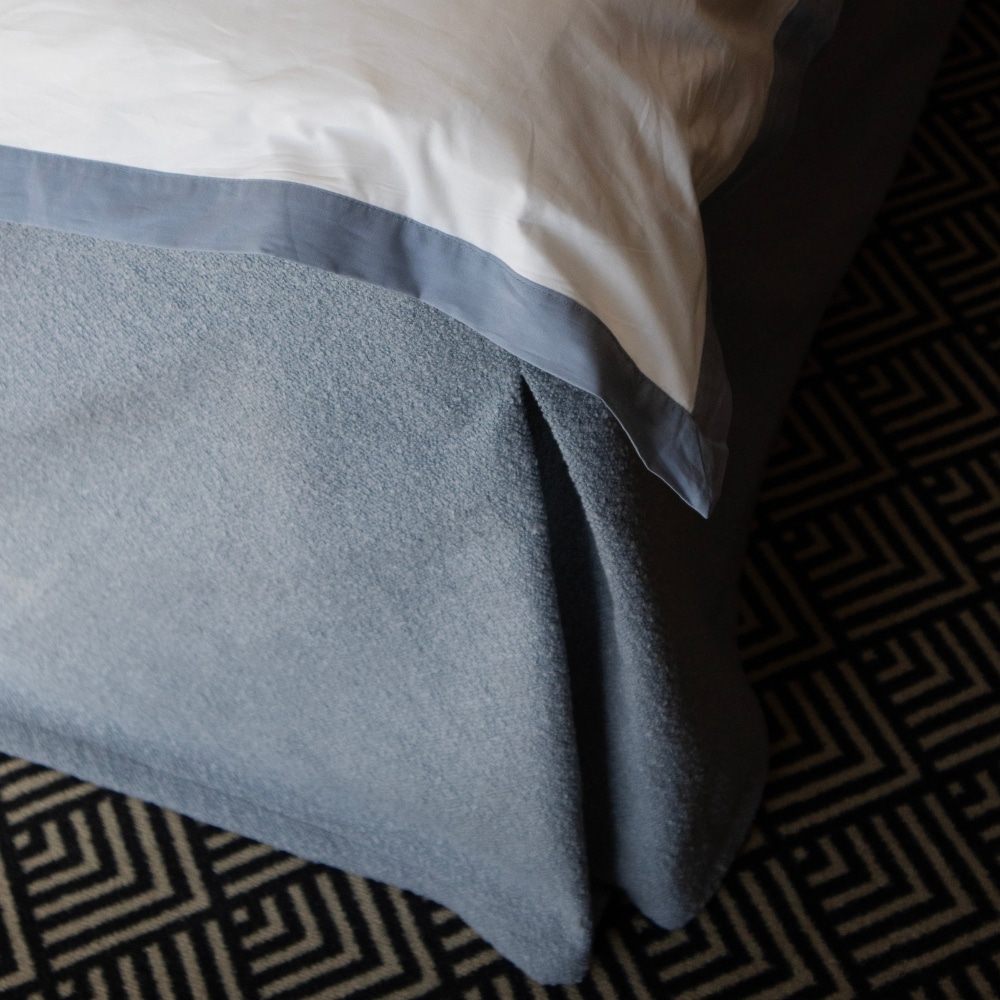 Matcha gärna med våra kuddfodral Rowan, Preston och Lowell samt sängkappan Claremont från Boe för en komplett och genomtänkt hotellkänsla i sovrummet.